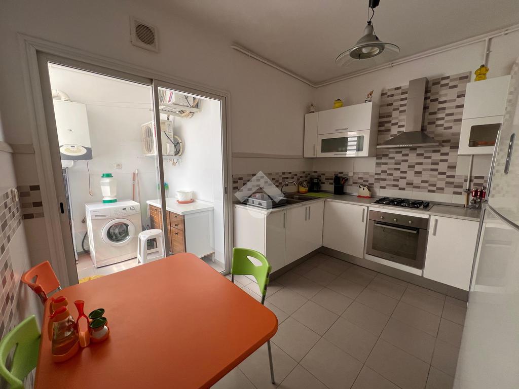 La cuisine est entièrement aménagée et équipée (plaque, hotte, four, réfrigérateur, machine à laver) et s’ouvre sur un séchoir pratique.