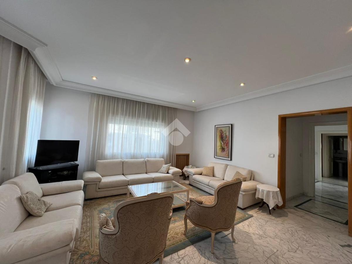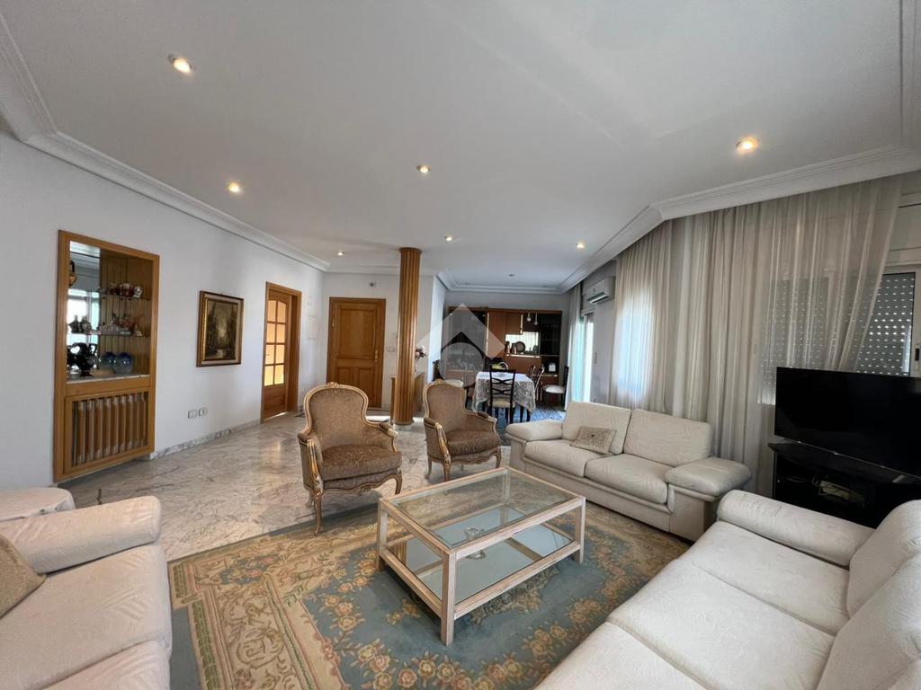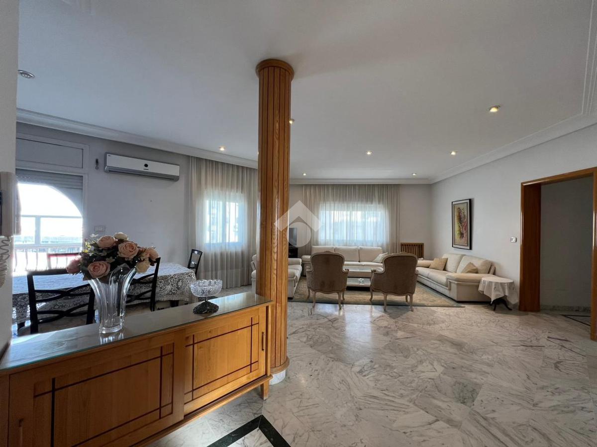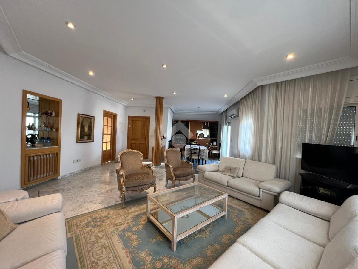 Cet appartement occupe le septième étage d'un immeuble en plein cœur d'Ennasr sur l'avenue Hedi nouira proche des commodités. Le hall d'entrée dessert le salon lumineux grâce à son balcon. La cuisine est entièrement aménagée et équipée d'une plaque chauffante , une hotte aspirante et d'un four électrique. Celle-ci ouvre sur un séchoir exploitable. Une salle d'eu pour les invités. La partie nuit dispose d'une suite parentale avec dressing et salle de douche. ainsi que deux chambres à coucher dont une avec balcon. Chauffage central et climatisation par split. Place de parking au sous-sol à disposition.
